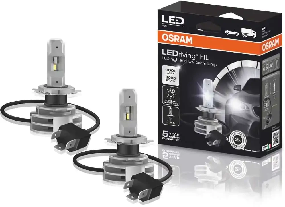 - Very compact LED replacement for conventional H4 high and low beam lamps